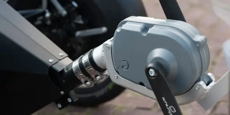 On trouve un système similaire dans le Podbike ou dans l'ULTIMATE TILTING SOLAR-POWERED SERIAL-HYBRID DELTA TRIKE que Bernard Cauquil a construit pour la course Sun Trip.